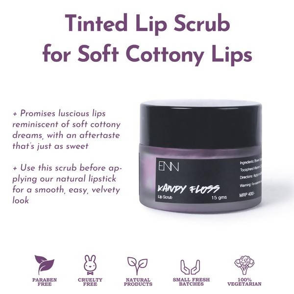 Experience the delight of sumptuous lips with the Kandy Floss lip scrub, evoking the essence of fluffy, dreamy sweetness. Completely herbal, natural, and devoid of chemicals, this lip scrub can be conveniently purchased online for a refreshing, youthful cotton candy transformation for your lips. Use this scrub prior to applying our natural lipstick for a flawlessly smooth and velvety finish. Order this herbal, all-natural lip scrub online, and Enn will ensure swift delivery to your doorstep.