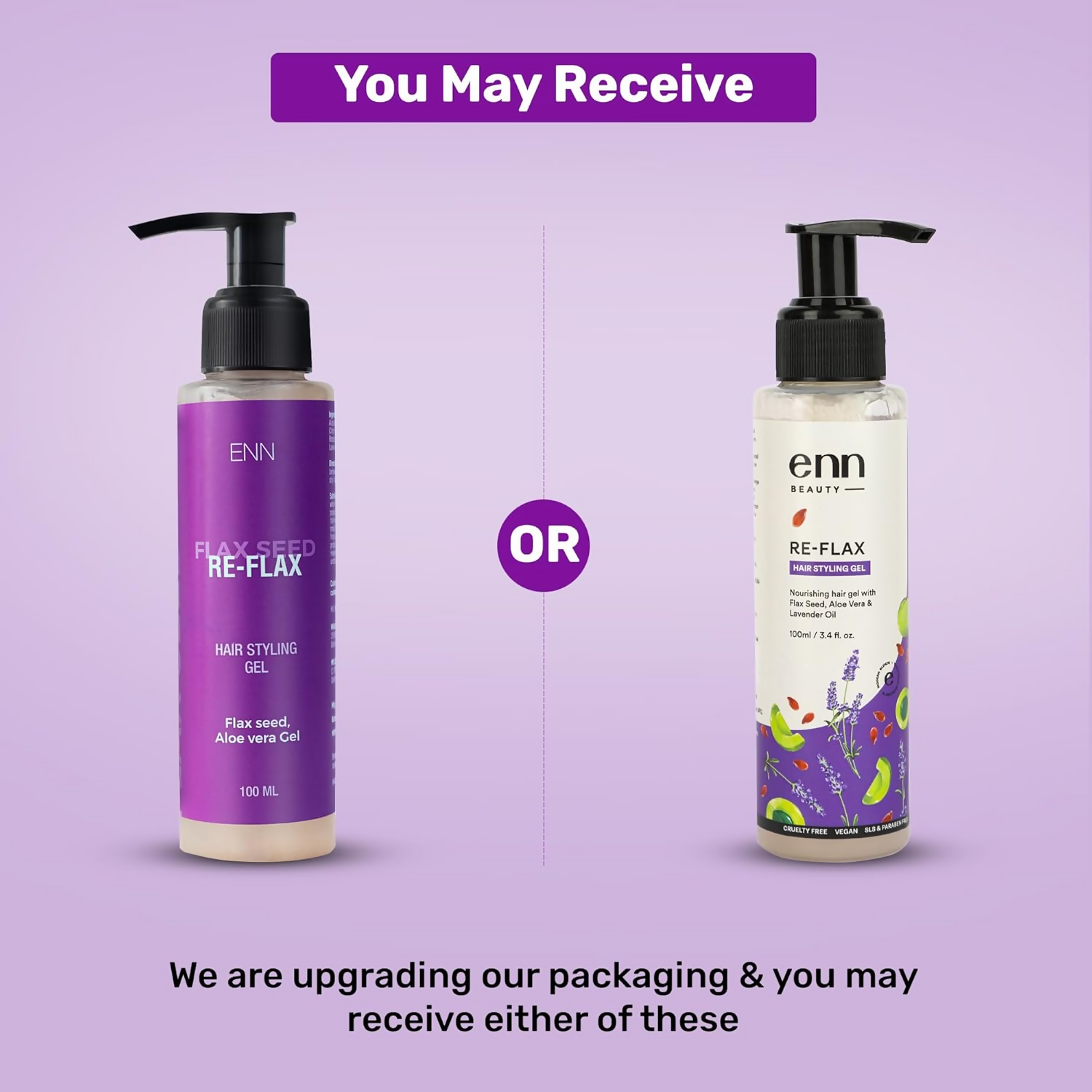 - ENN Re-Flax hair gel is a Keratin Boosting 3 in 1 Gel that excels as an omega 3 enriched flax seed gel, transforming unruly and dry hair into manageable locks. This styling gel is packed with the ability to tame frizz and provide styled hair with just a small amount.