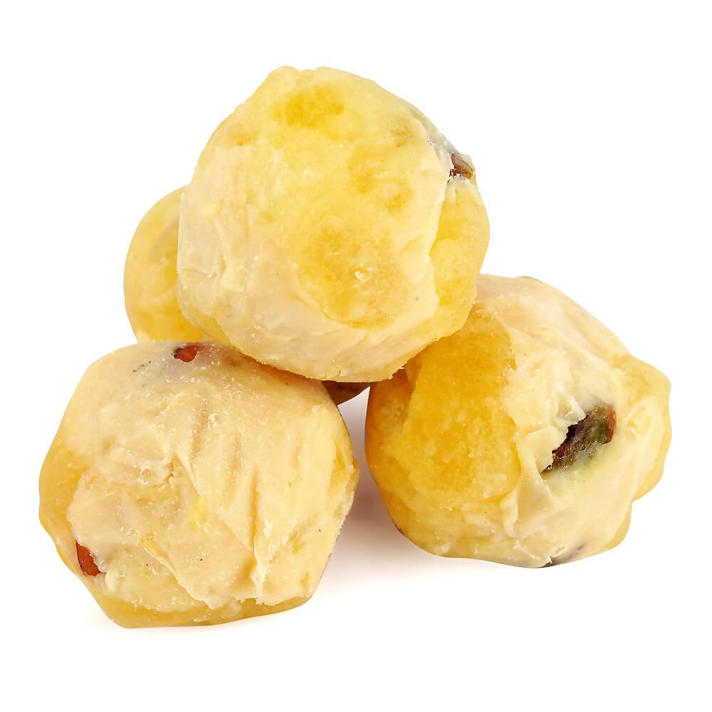 This delectable Laddoo is infused with luscious Pineapple and crafted using Almonds, Pistachios, White Chocolate, Honey, Kiwi pulp, and Evergreen's secret recipe. This exceptional Laddoo is truly irresistible.