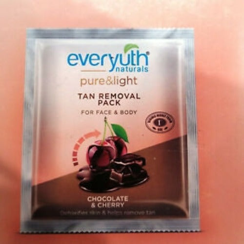 Shield your skin from the damaging effects of the sun. Introducing the new Everyuth Naturals Pure and Light tan removal face and body pack, featuring a perfect blend of Vitamin-rich Cherry for brightening and indulgent detoxifying Chocolate. This tan removal pack assists in detoxifying the skin and eliminating tanning, leaving your skin looking noticeably brighter, refreshed, and rejuvenated. It’s time to treat your skin with care!How to Use: