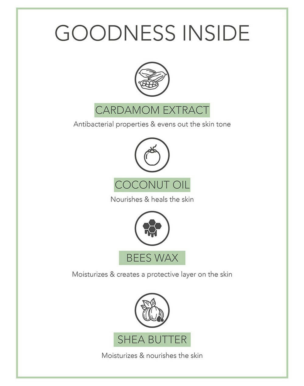 - Fabessentials Coconut & Cardamom lip butter is crafted without harmful additives, ensuring gentle care for your lips. Enriched with Coconut Oil and Cardamom Extract, this lip butter offers a natural solution for moisturizing. Shea butter contributes to maintaining your lips' health and hydration. This luxurious lip butter nurtures, smooths, shields, and enhances your lips, providing them with a radiant glow.