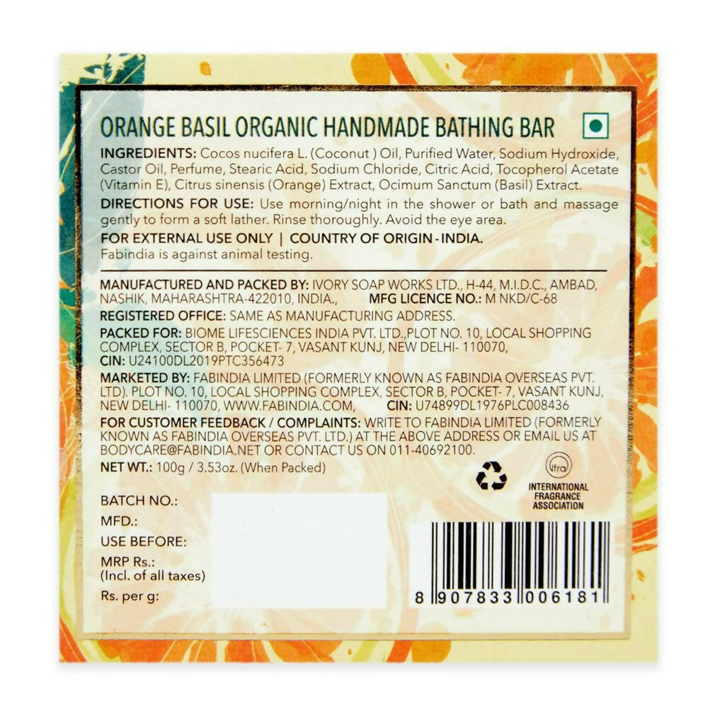 About the product:Fabessentials Orange Basil Organic Handmade Bathing Bar purifies the skin with a gentle foam. The infusion of orange and basil will not only make your shower time invigorating and fragrant but also provide numerous skin advantages. Basil aids in lifting impurities from the skin’s surface, and orange extracts promote a healthy and radiant complexion.