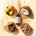 - Tame frizz, safeguard your hair, and enhance its shine with this powerful leave-in hair oil. Formulated for use on damp hair, this Ayurvedic blend is enriched with six revitalizing fruit oils and shikakai. This acclaimed elixir offers protection from heat damage up to 450 °F and UV rays, while moisturizing each strand for a vibrant, glossy, and healthy appearance.