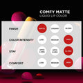 How To Use:- Begin applying the Comfy Matte Lip Color from the outer edge of your lips towards the center.