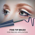 - Embrace a flawless eyeliner appearance that defies smudging and fading with a resilient formula designed to last all day. Featuring a precision fine tip brush, this eyeliner enables you to effortlessly craft crisp and defined lines, perfect for achieving an eye-catching winged eyeliner or artistic graphic style that demands attention.