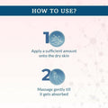- Apply a thin layer to moist skin, ideally after a shower, and gently massage until fully absorbed.
