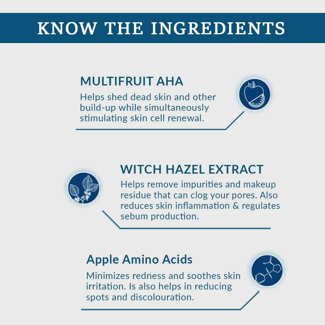 The FCL face toner is a mild formulation designed to refine pores and invigorate the skin by effortlessly removing excess oil and impurities. Infused with Multifruit AHA, Witch Hazel, and Rose Flower extracts, this toner is suitable for all skin types.