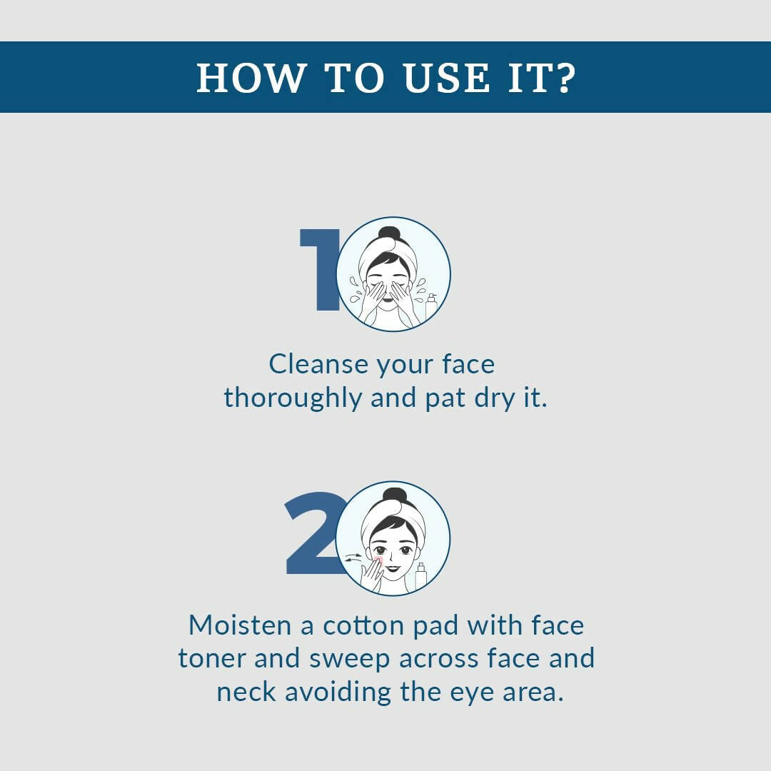 - After cleansing, dampen a cotton pad with the face toner and gently sweep over your face and neck, steering clear of the eye area. Follow up with a serum or moisturizer. Use it both in the morning and evening for healthier, softer, and cleaner skin.