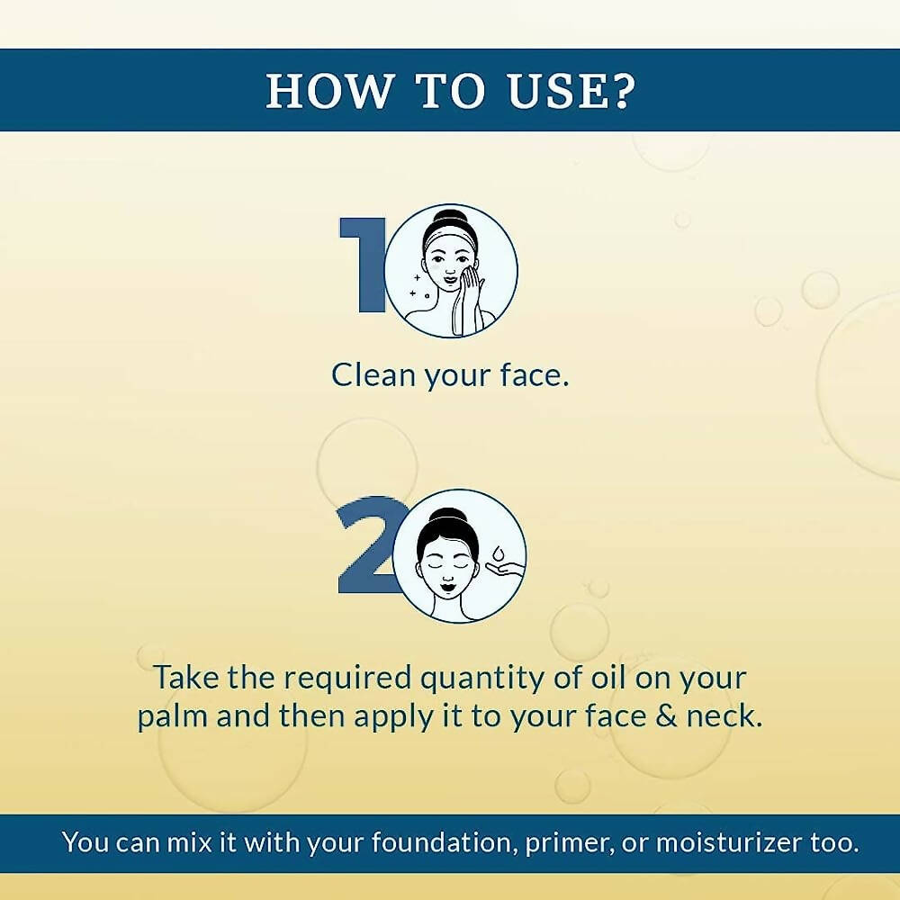 - Dispense the necessary amount of oil onto your palm and then apply it to your face & neck.