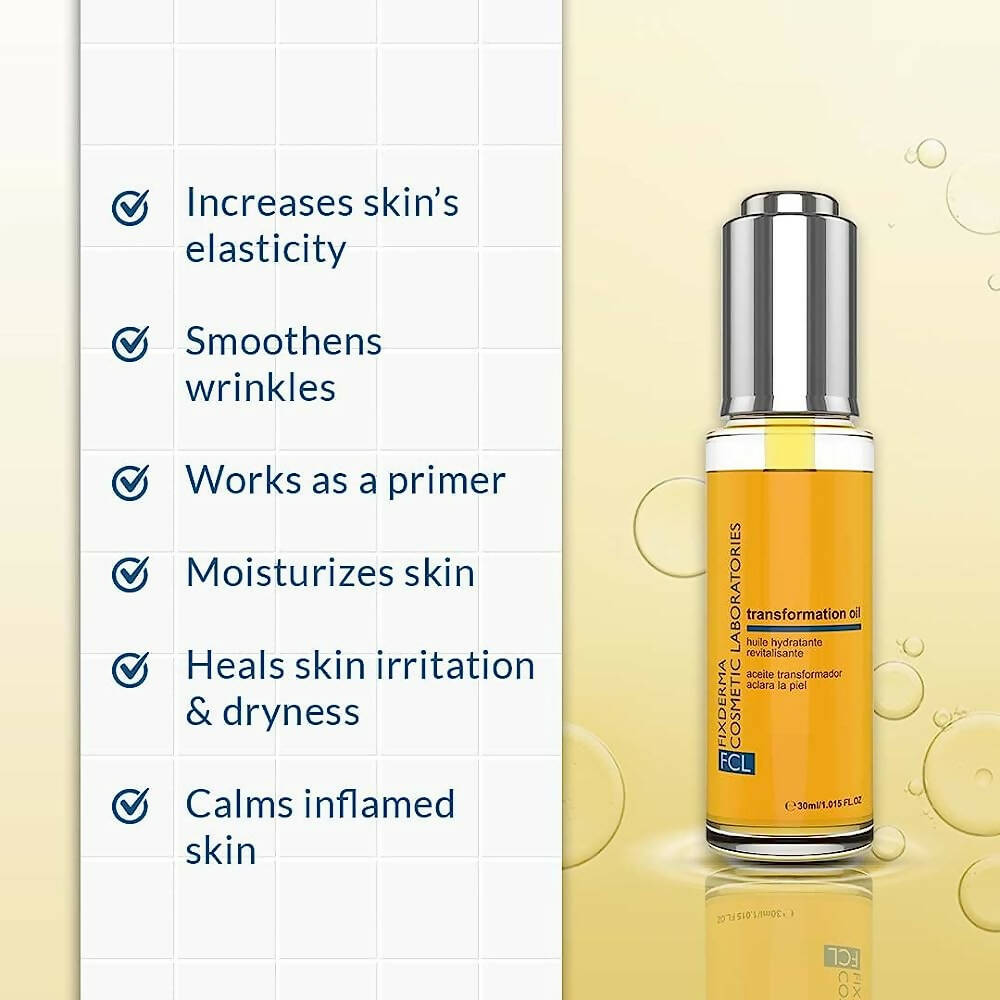Radiant & Moisturizing Face Oil: Delivers Moisture to Lackluster and Parched Skin. This lightweight formula is enriched with natural oils and aids in enhancing skin suppleness