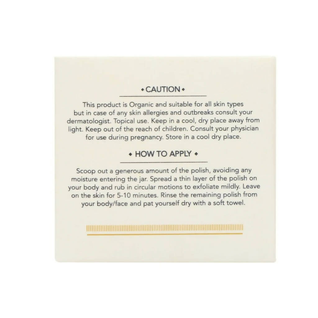 - Apply a thin layer of the polish onto your body, massaging in circular motions to gently exfoliate.