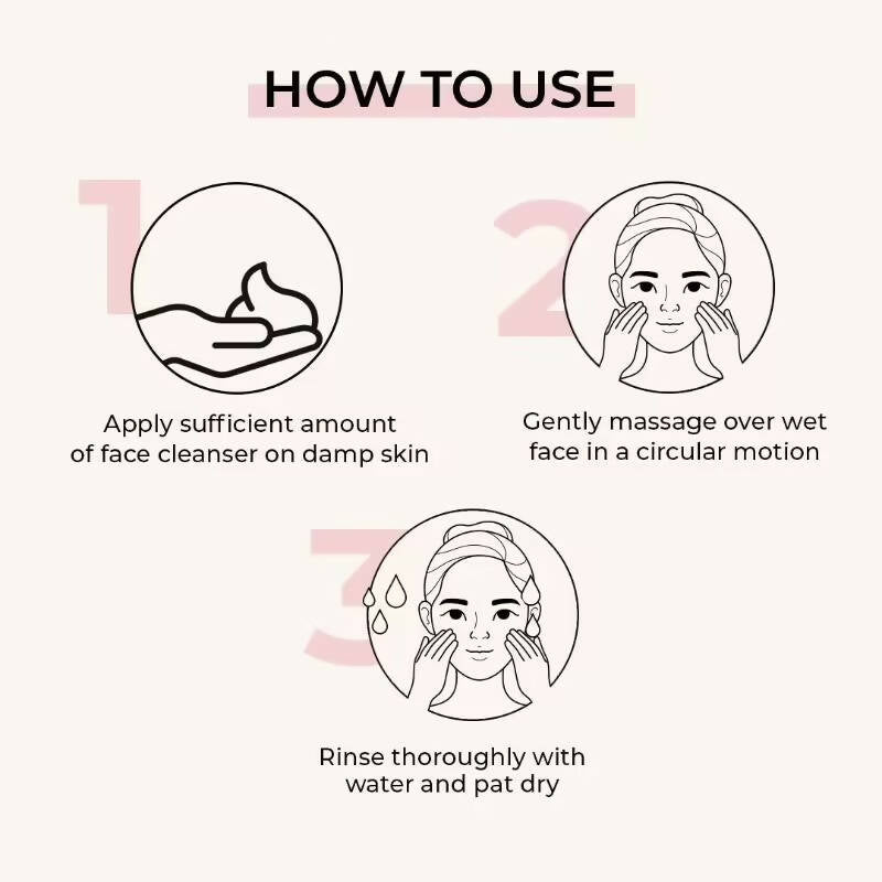 Directions for Use:- Dispense an adequate amount of face cleanser onto moistened skin.
