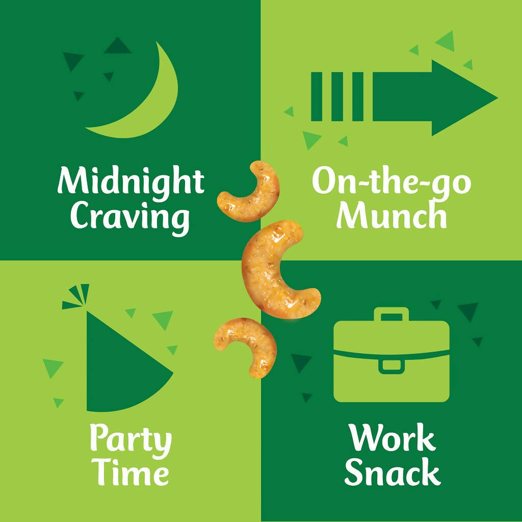 Delightfully crunchy and smooth, with a touch of nutty sweetness, aren't cashews your preferred nut? Infuse them with zesty chili garlic for an extra layer of deliciousness! Our 25g snack packs are ideal for enjoying on the go or at your workstation. Indulge in them anytime during the day for a quick energy boost or while unwinding in the evening; they’re an excellent all-natural treat.