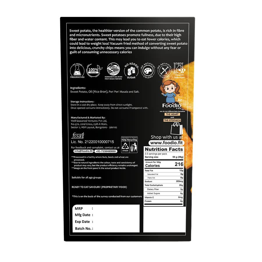 - Sweet Potato, Oil (Rice Bran), Red Chilli Powder, Jeera Powder, and Salt.