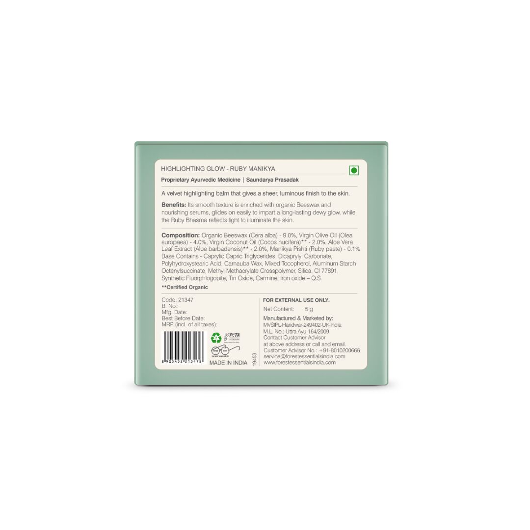 - The Highlighting Glow Manikya is a velvet-smooth highlighter balm that delivers a sheer, luminous finish to the skin. Enriched with organic beeswax and nourishing serums, the balm effortlessly glides on to provide a long-lasting dewy glow. This formulation is infused with manikya pishti or ruby paste, which reflects light to illuminate the skin, leaving it with a naturally radiant appearance.
