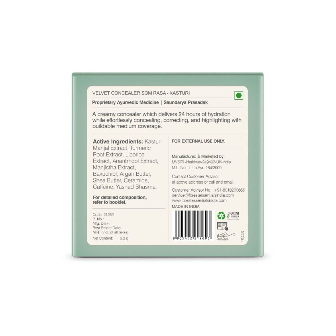 - The Som Rasa Velvet Concealer Kasturi is a luscious concealer offering customizable medium coverage that seamlessly conceals and corrects flaws. It is enriched with skin-nourishing ingredients that provide 24 hours of hydration for a radiant, enduring glow. Infused with kasturi manjal, it refines the skin's texture while enhancing overall complexion.