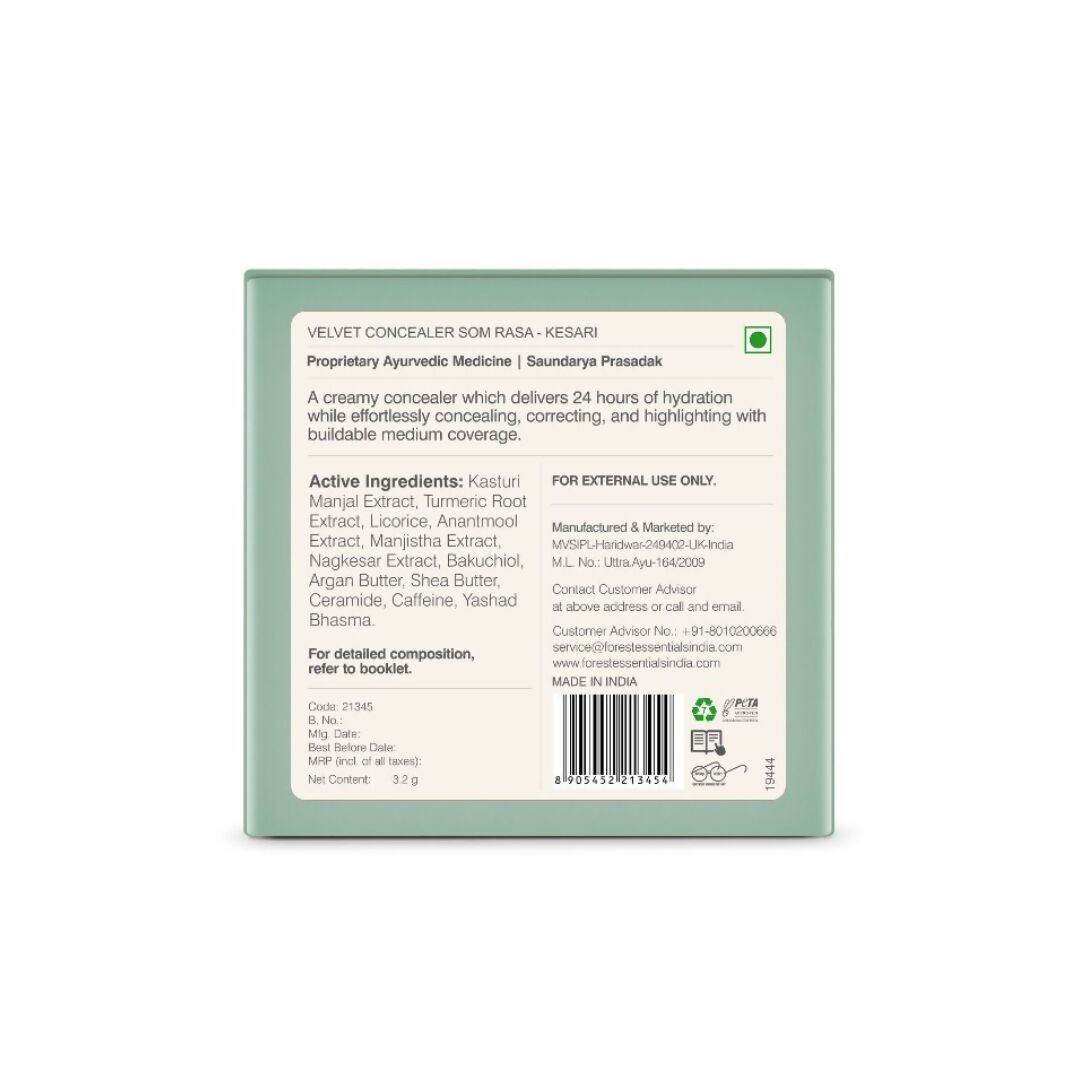 - The Som Rasa Velvet Concealer Kesari is a luscious concealer offering adjustable medium coverage that seamlessly hides and corrects flaws. Enriched with skin-enhancing components, it provides 24-hour hydration for enduring radiance. It includes nagkesar, which aids in achieving a uniform skin tone.