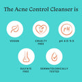 - SAFE AND ETHICAL INGREDIENTS: The Acne Control Cleanser is Vegan, Cruelty-Free, Sulfate-Free, Paraben-Free, Dermatologically Tested, and maintains a pH of 4.5-5.5. Unlike other 2% w/w Salicylic Acid cleansers, it doesn’t dehydrate your skin.
