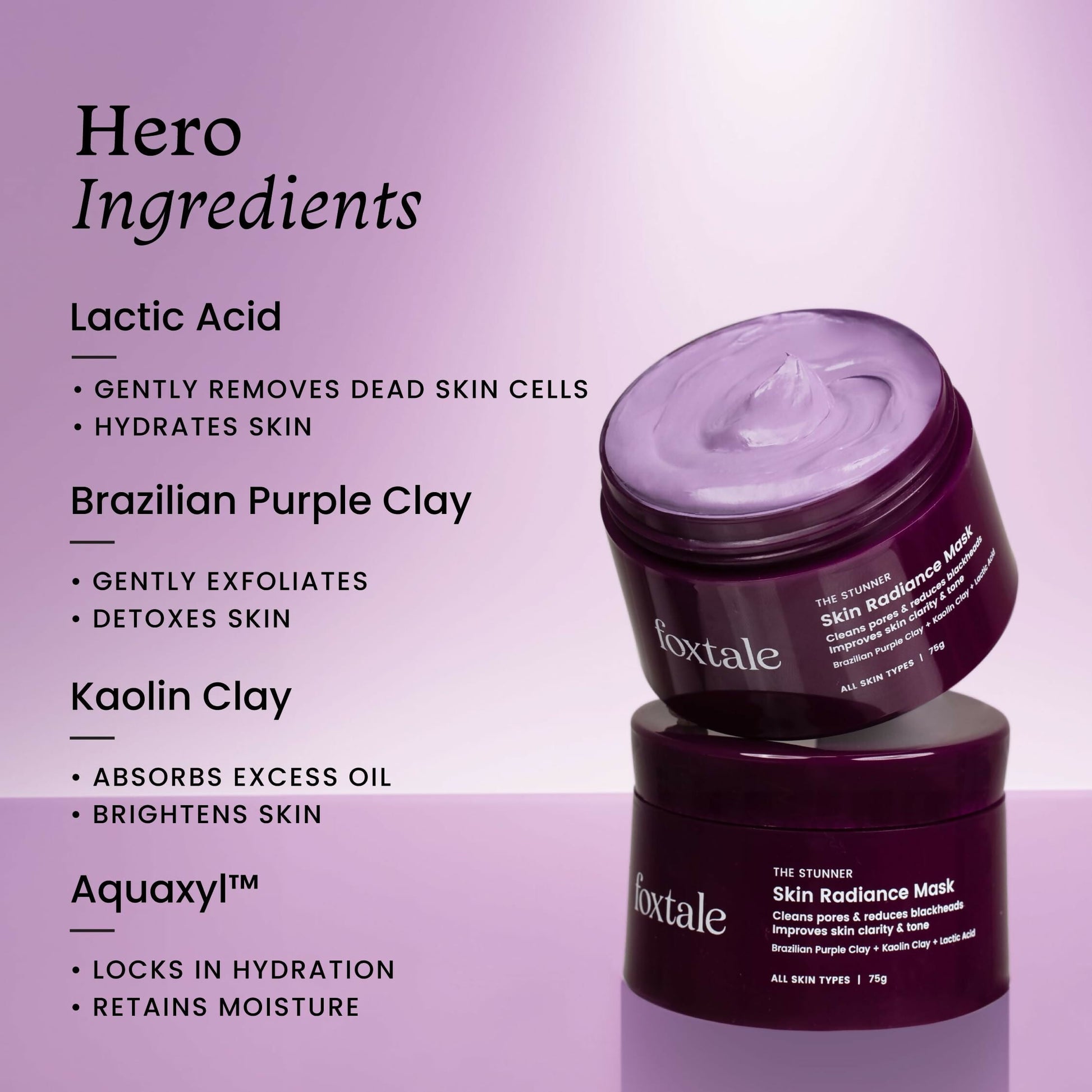 Foxtale De-Tan Face Mask For Glowing Skin - Clay Mask with Lactic Acid For Tan Removal, Reduction in Blackheads, Instant Brightening