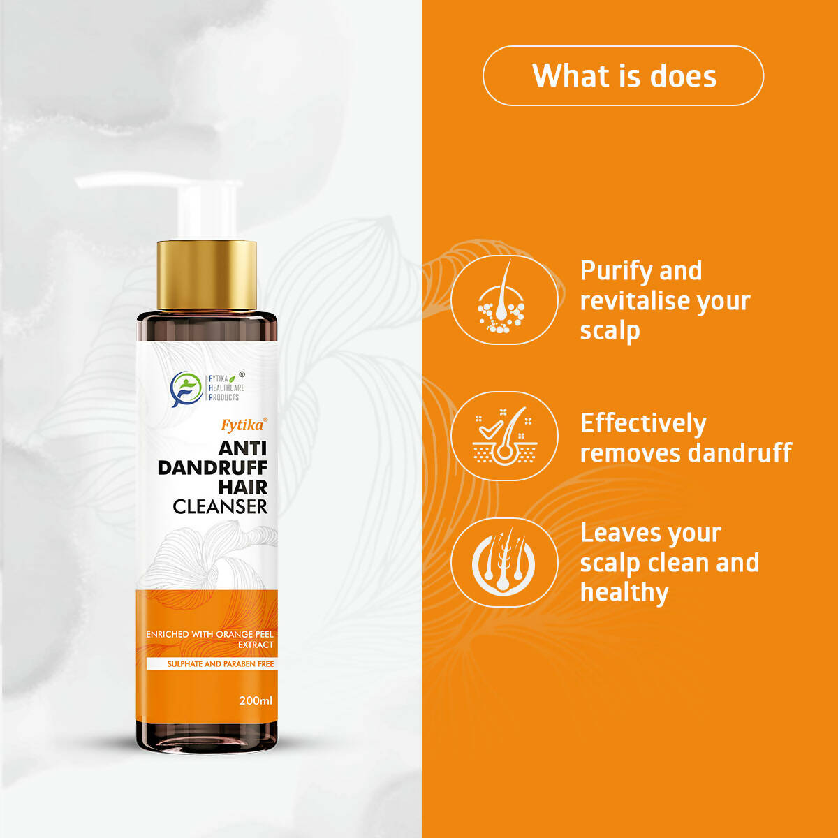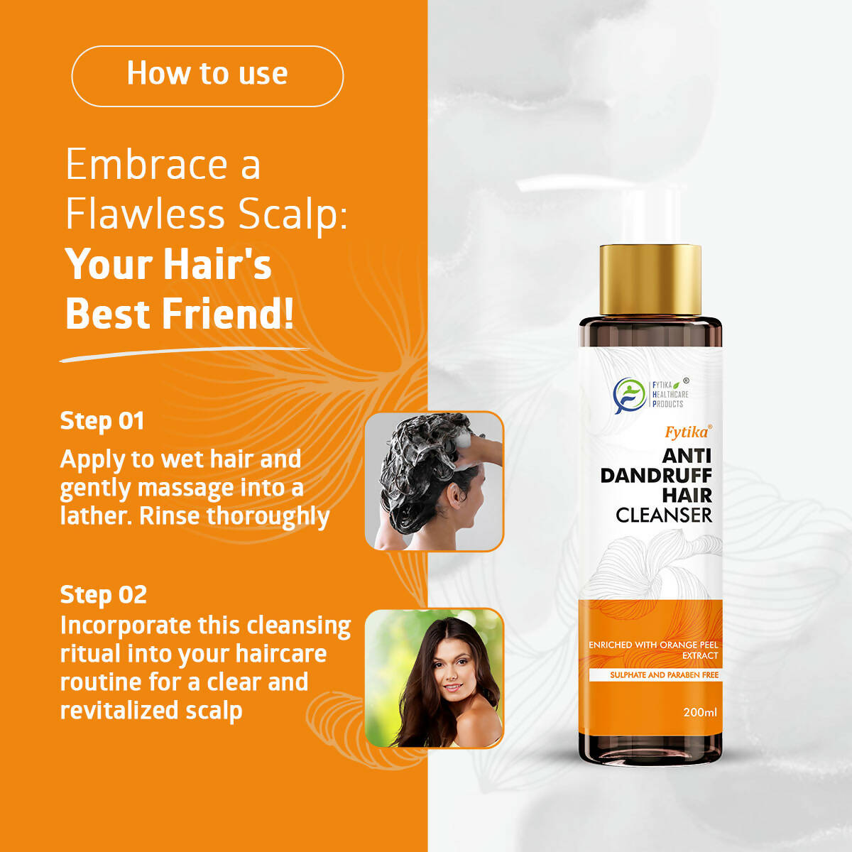 - Fytika Anti-Dandruff Hair Cleanser: Infused with the enriching essence of Orange Peel Extract, Neem, Amla, Reetha, and Aloe Vera extracts. This expertly crafted formula is designed to address dandruff while promoting a clean, healthy scalp. Its robust cleansing action effectively removes dirt and impurities from the scalp, eliminating dandruff and revitalizing hair health. This nourishing cleanser imparts a radiant shine and a refreshing sensation to your hair. Gain confidence in a dandruff-free appearance with Fytika's scalp-nurturing solution!