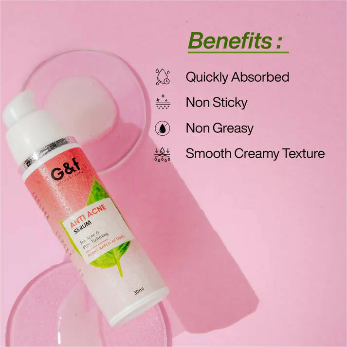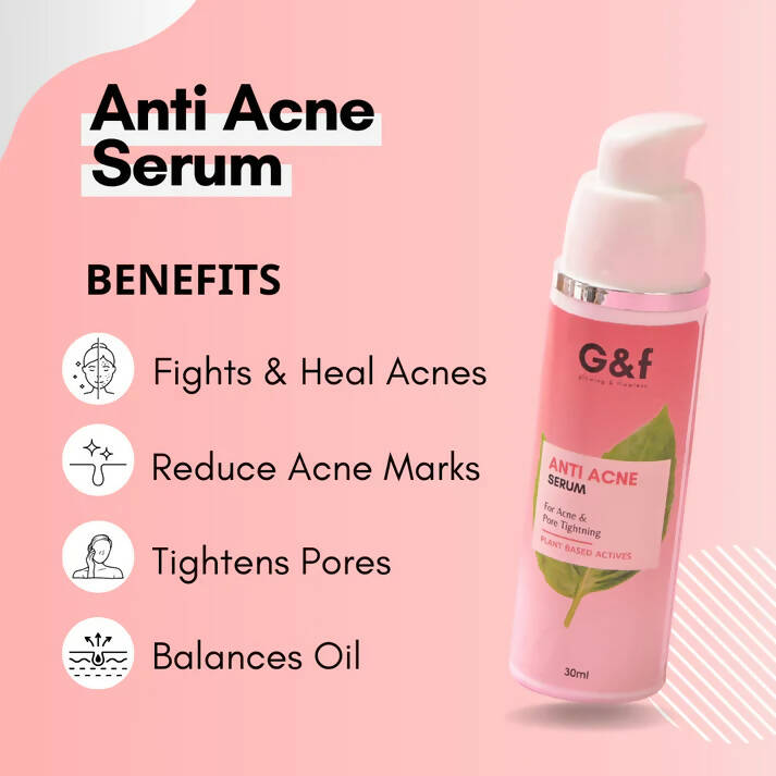 Our skin constantly battles dirt, excess oil, greasy foods, and perspiration, all contributing to pimples and acne. G&f anti-acne serum is essential for balancing oil levels, combating blemishes, and achieving radiant, flawless skin.