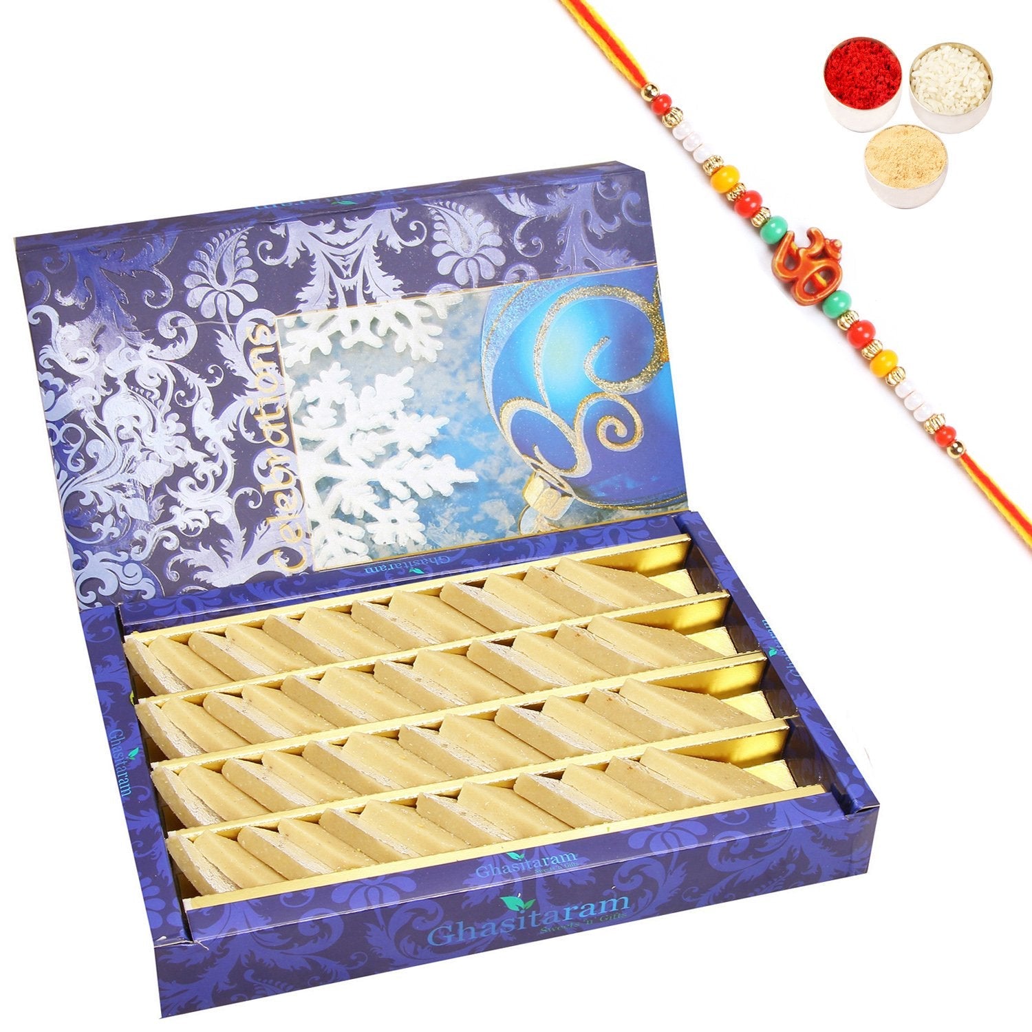 Ghasitaram Pure Kaju Katlis Box with Pearl Beads Rakhi