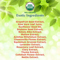 Ingredients:- Grapefruit Seed Extract, Aloe Vera Leaf Juice, Sunflower Seed Oil, Soybean Seed Extract, Betula Alba Extract, Mallow Extract, Achillea Millefolium Extract, Chamomilla Flower Extract, Equisetum Arvense Extract, Lavender Extract, Rosemary Leaf Extract, Clary Extract, Thyme Extract, Coltsfoot Flower Extract, Nettle Extract.