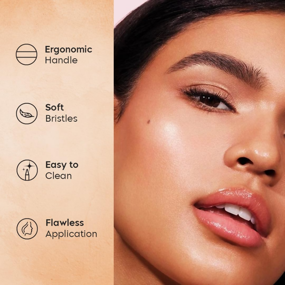 Using the brush is straightforward and requires little effort to attain a smooth finish. The flat top is excellent for covering larger areas of the face, while the brush's edges are perfect for precise application in smaller zones, like around the nose and mouth.