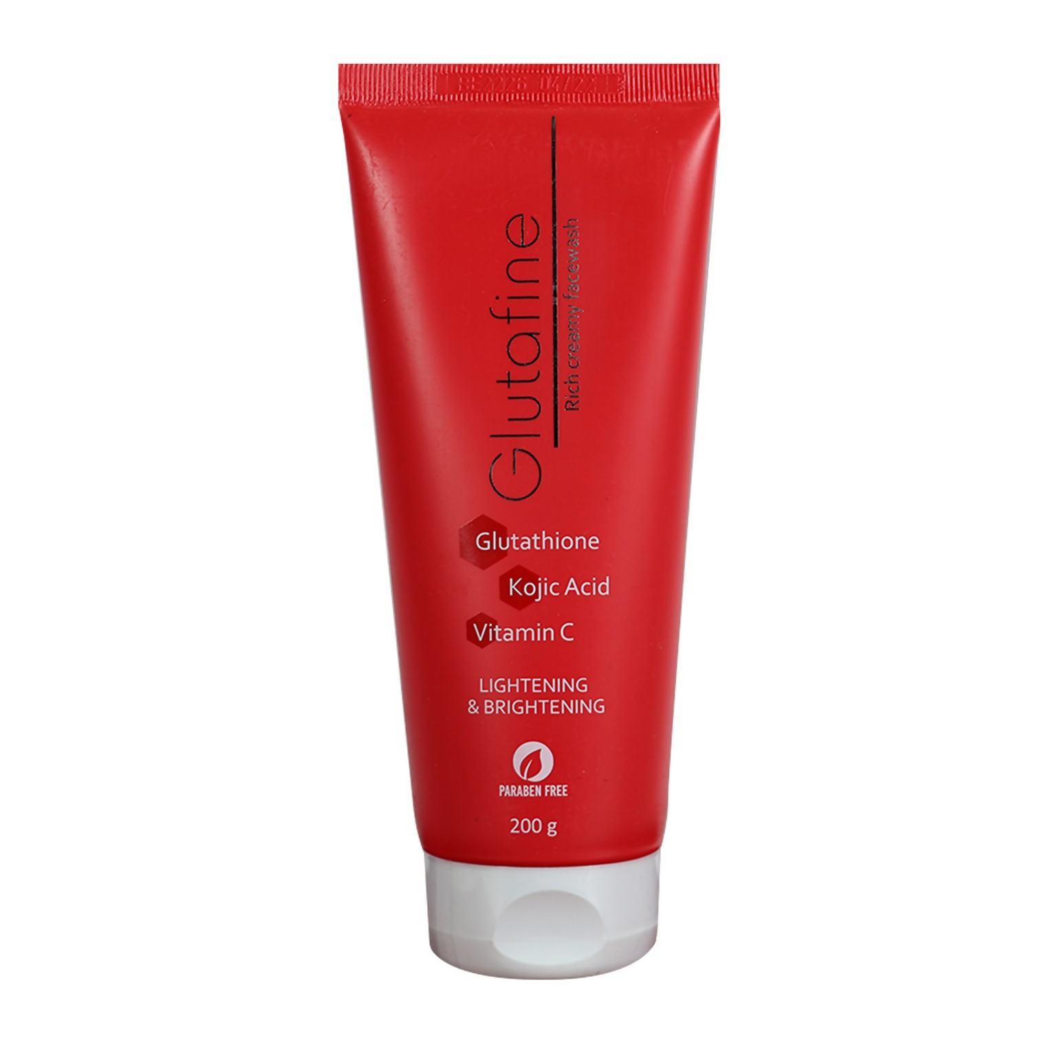 Glutafine Ultra-Rich Creamy Face Wash imparts a skin lightening and brightening effect through its triple-action formula featuring Glutathione, Kojic Acid, and Vitamin.