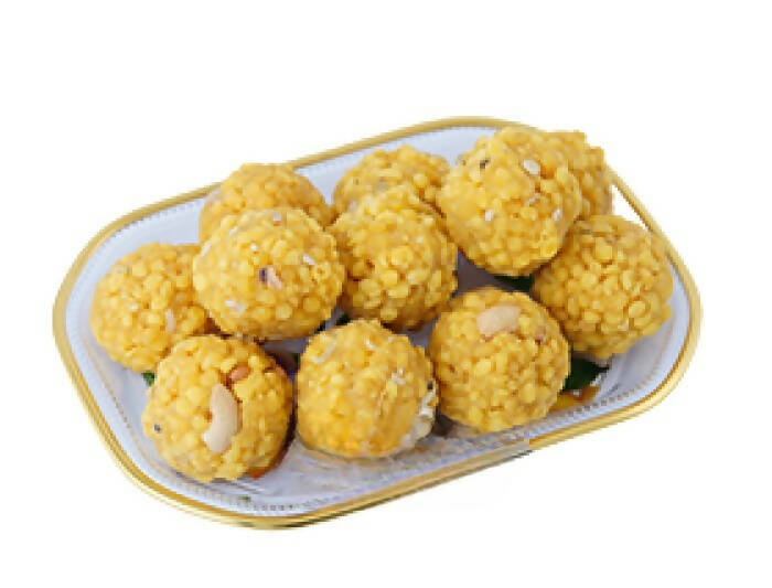 About the Product:- Among the numerous varieties of ladoo, this South Indian Boondi Laddu remains one of the most delightful confections. Crafted primarily with gram flour, this Boondi laddu is sweetened with a luscious sugar syrup and enriched with crunchy nuts and cashews, alongside raisins for an extra burst of flavor. The Boondi laddu is formed into small, delectable balls that gently dissolve in your mouth. Savor these tasty Boondi ke laddo at any time, whether as part of a meal or simply as a sweet indulgence. Boondi laddu is a delectable and irresistible sweet that is a staple for all auspicious festivals and celebrations.