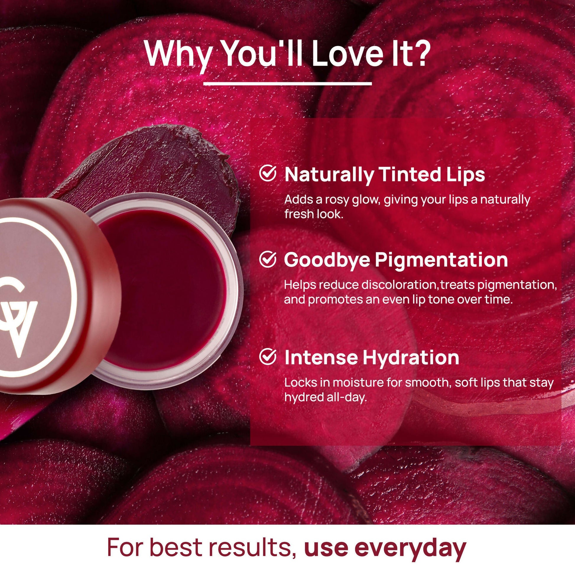 - Enriched with the goodness of beetroot, this balm transcends basic hydration to indulge your lips with nature's nurturing touch.