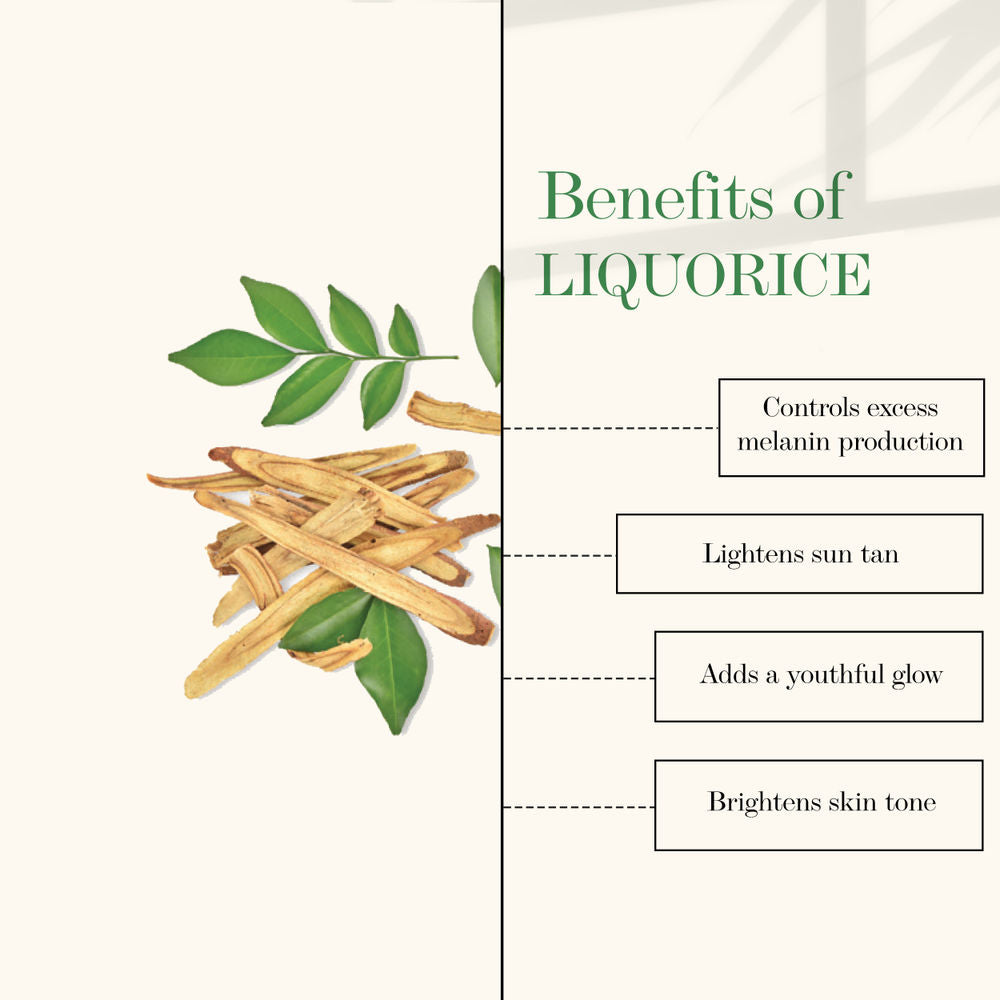 Crafted to enhance your skin’s radiance and assist in tan removal, the Good Vibes Liquorice De-Tan Serum helps address skin discoloration, minimize tan, and shield your skin from the harmful effects of sun exposure, resulting in a complexion that is tan-free, luminous, and vibrant!