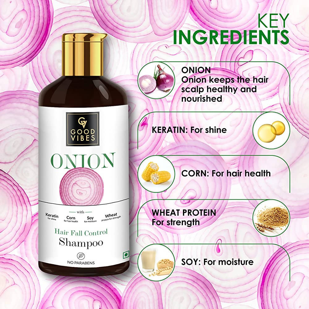 Good Vibes Onion Hairfall Control Shampoo With Keratin, Corn, Wheat Protein & Soy