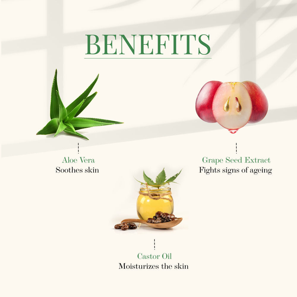 Achieve youthful, vibrant skin with ease using Good Vibes Vitamin C & Goji Berry Depigmentation & Wrinkle Balancing Face Serum. Both Vitamin C and Goji Berry are abundant in antioxidants. They assist in fading dark spots, fine lines, wrinkles, and acne scars, effectively reducing the appearance of hyperpigmentation and uneven skin tone. Goji Berry is essential for youthful skin as it combats wrinkle-inducing free radicals and helps fortify the skin barrier. Together, Vitamin C and Goji Berry enhance collagen production, keeping the skin firm and elastic. This serum also locks in moisture and regenerates new cells for a luminous, even-toned complexion. Enriched with the benefits of Grape Seed, which combats aging signs, Aloe Vera, which hydrates and calms inflamed skin, and Vitamin E, which nourishes the skin. This enchanting bottle is all you need for revitalized, youthful skin.