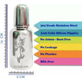 About Product:- Effortless for your Baby to grip. Premium Lightweight 304 Food Grade Stainless Steel, ensuring a Rust-Free experience prioritizing your Baby's Health and Hygiene. The Bottle's Nipple is crafted from Food Grade Silicon material. Features a Spill-Proof Screw Type Nipple Cap and a Push Type Outer Lid for complete leak protection. Extra gentle, medical-grade silicone spout.