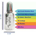 About Product:- Effortless for your Baby to grasp. Premium Lightweight Quality 304 Food Grade Stainless Steel, Rust Resistant Product prioritizing the Health and Hygiene of your Baby. The Nipple of the Bottle is crafted from Food Grade Silicone material. Spill-Proof Screw Type Nipple Cap and Push type outer lid ensure the bottle is entirely leakproof. Extra soft, medical-grade silicone spout.