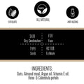 - Oats, Almond Meal, Argan Oil, Vitamin E Oil, Rose, Calendula Petals.