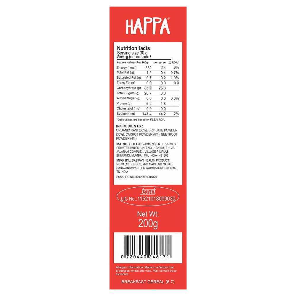 Happa Organic Baby Food Sprouted Ragi, Carrot & Beetroot Porridge Mix-Stage 2