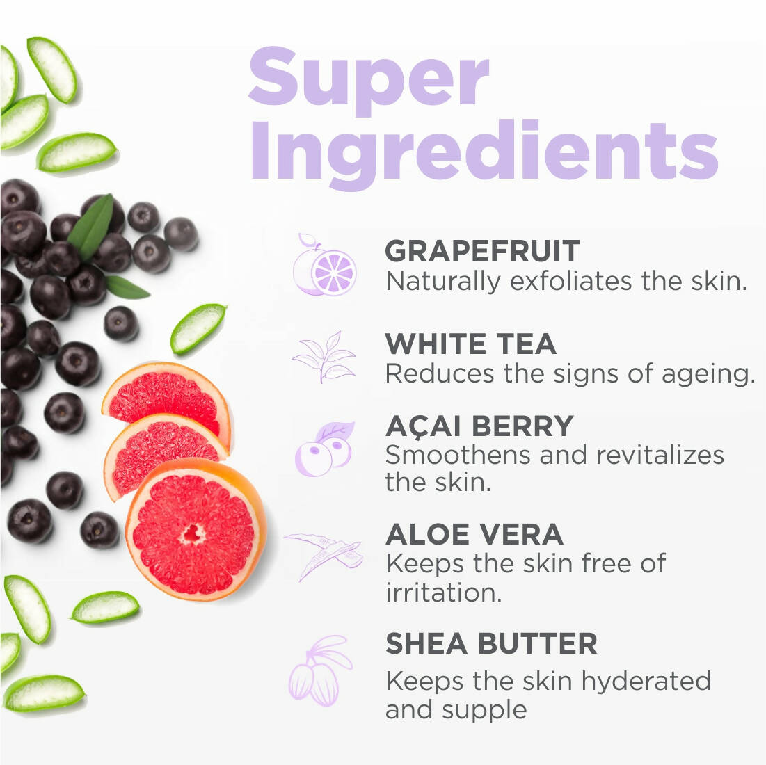 Ingredients:- grapefruit extract, white tea leaf extract, berry fruit oil
