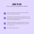 - Shake thoroughly. Liberally spray on damp or dry hair and comb through. Do not rinse out.