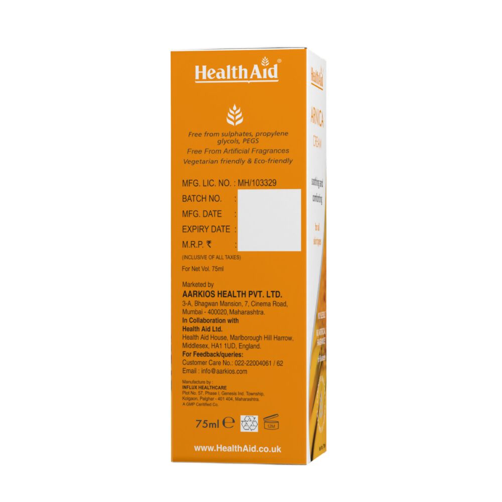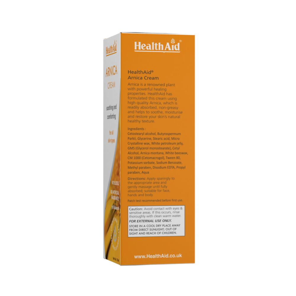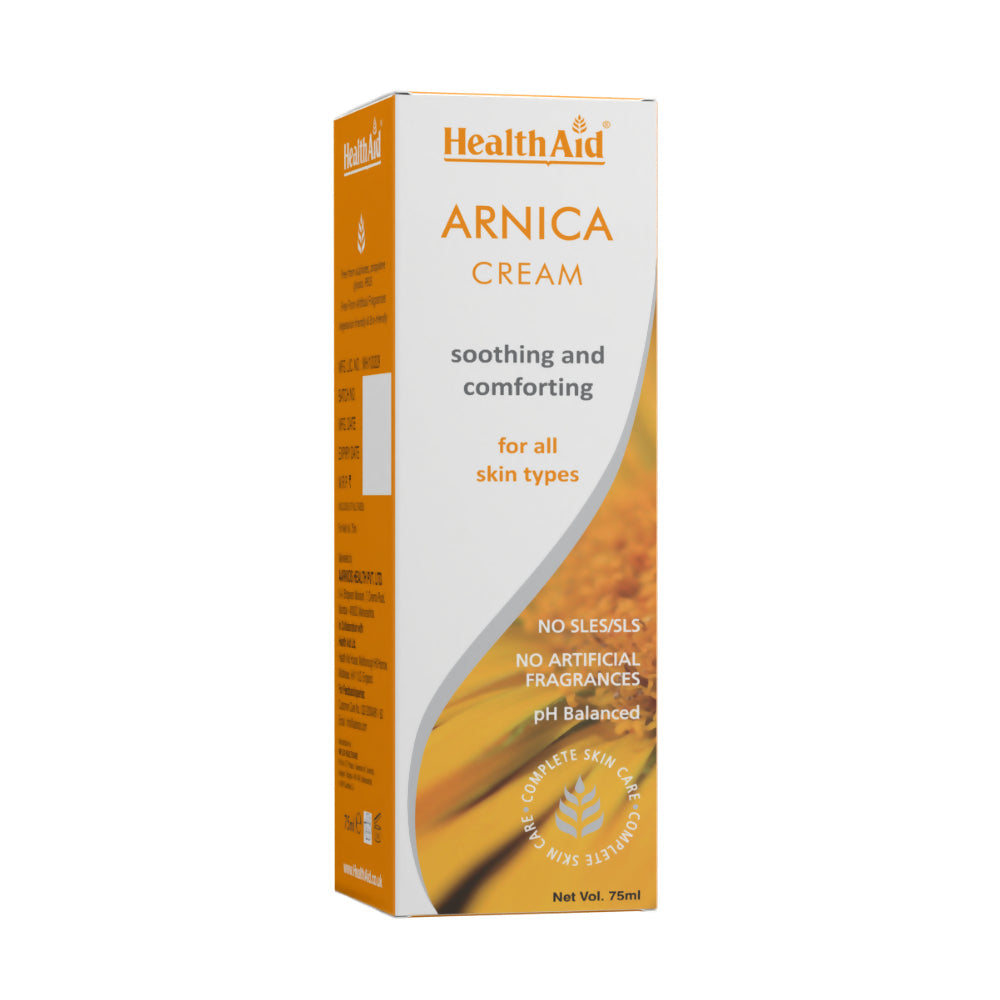 - Arnica Cream incorporates Arnica, a celebrated botanical known for its potent health benefits. HealthAid has expertly crafted this cream using premium Arnica, ensuring it is easily absorbed, non-greasy, and effectively soothes, moisturizes, and revitalizes your skin's natural, healthy texture.