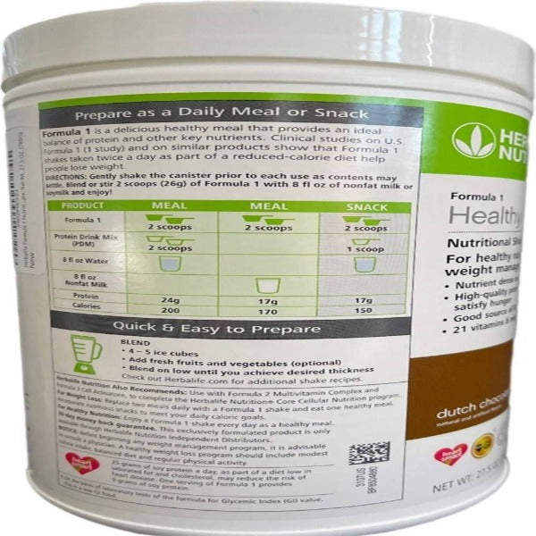Are you looking for a tasty and simple approach to meet your dietary goals? Herbalife Formula 1 smoothie Mix in Dutch Chocolate taste is a nutritious meal replacement smoothie.