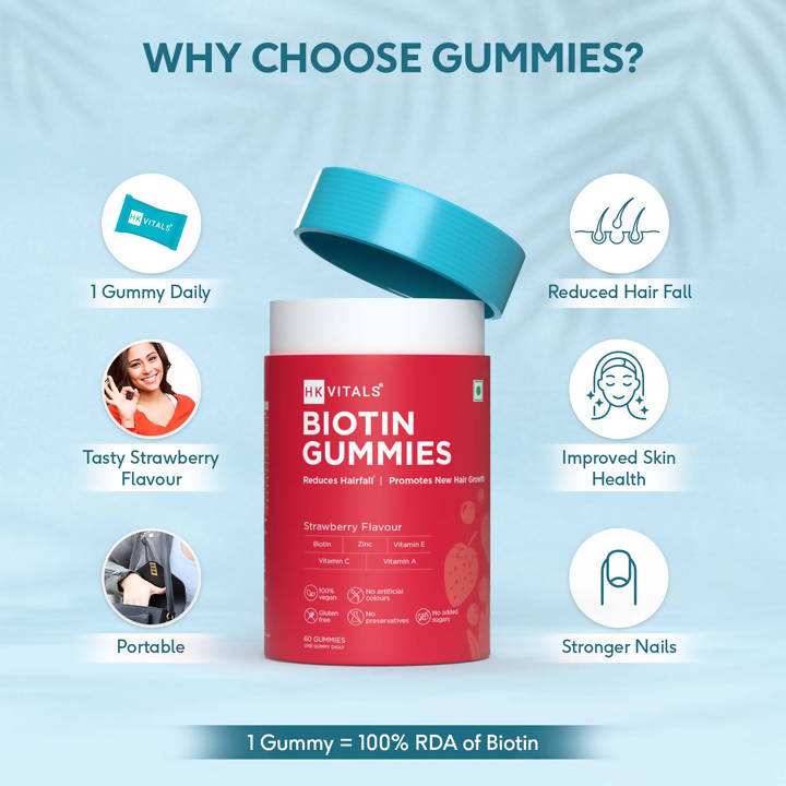 - Delicious strawberry-tasting gummies for skin, hair, and nail health