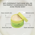 - Next, evenly distribute a thin layer of HOB’s Overnight Face Mask across your face and under-eye area using the spatula.