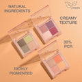- An eyeshadow palette with natural origins, crafted to accentuate eye color through essential, adaptable shades that offer maximum effect with minimal effort