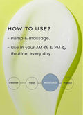 - Activate the bottle by pressing the pump. Dispense a few pumps and thoroughly massage into your skin.