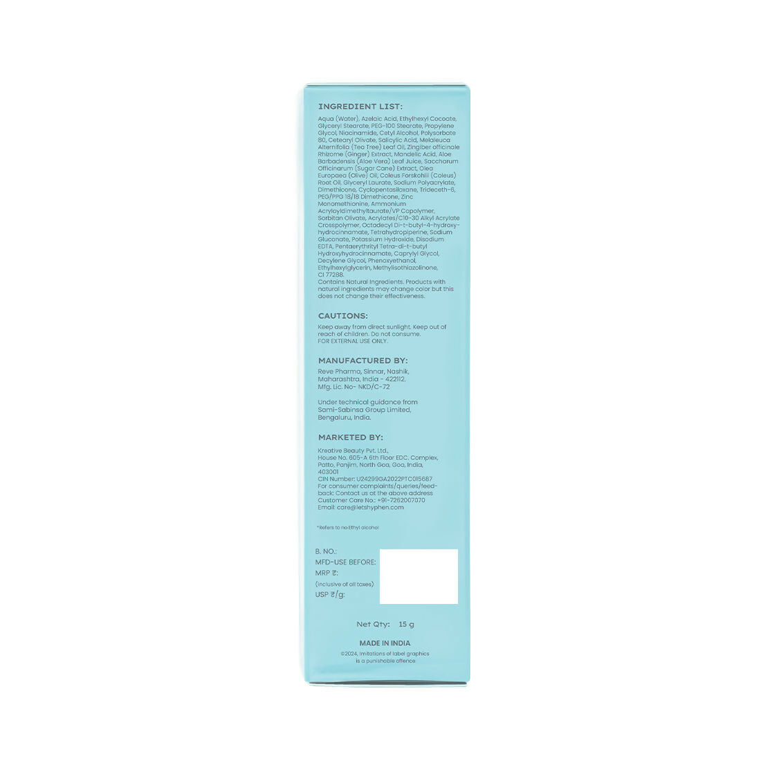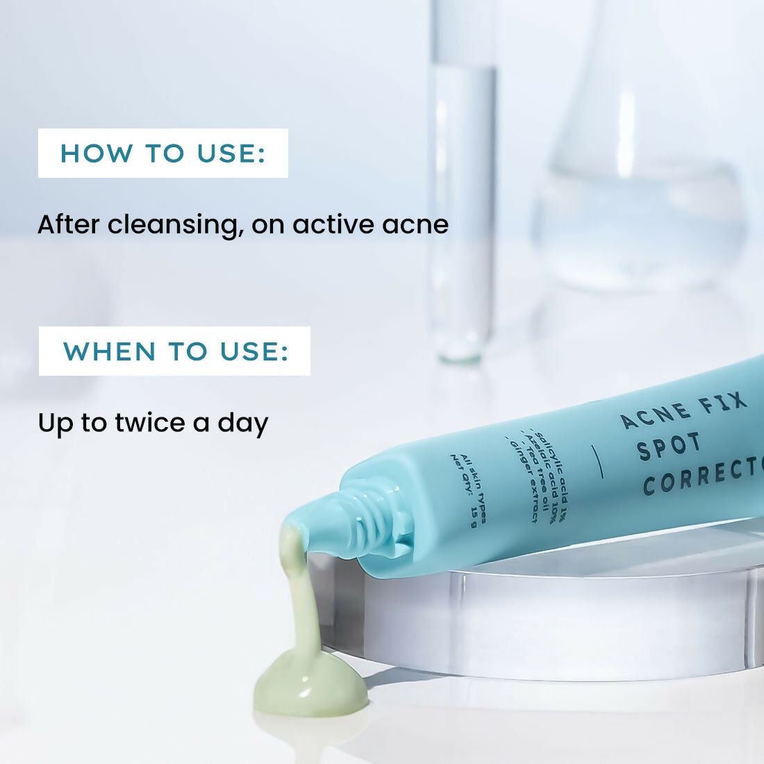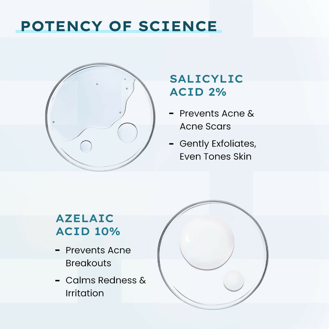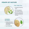 - Salicylic Acid, Azelaic Acid, Niacinamide, Tea Tree Leaf Extract, Ginger Extract.