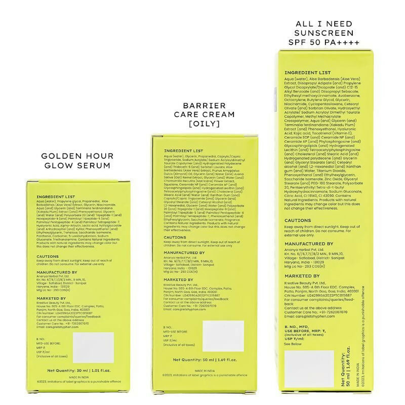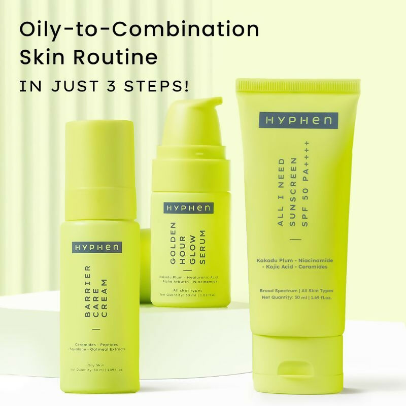 Hyphen By Kriti Sanon Daily Face Care Regime Combo - Oily & Combination Skin, with Glow Serum, Moisturizer & Sunscreen