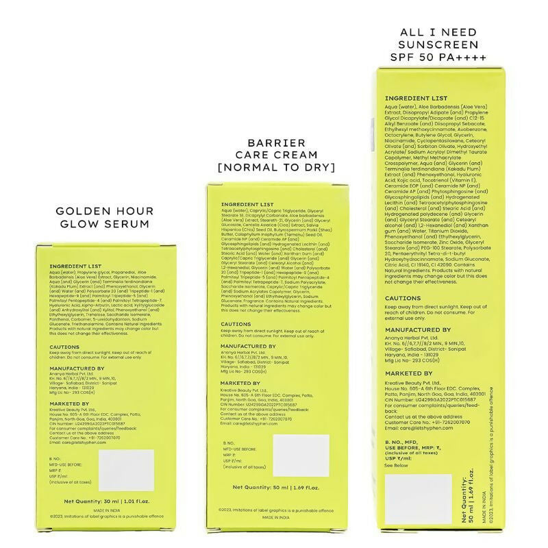 Hyphen By Kriti Sanon Skincare Routine for Normal to Dry Skin Combo with Face Serum, Moisturizer & Sunscreen