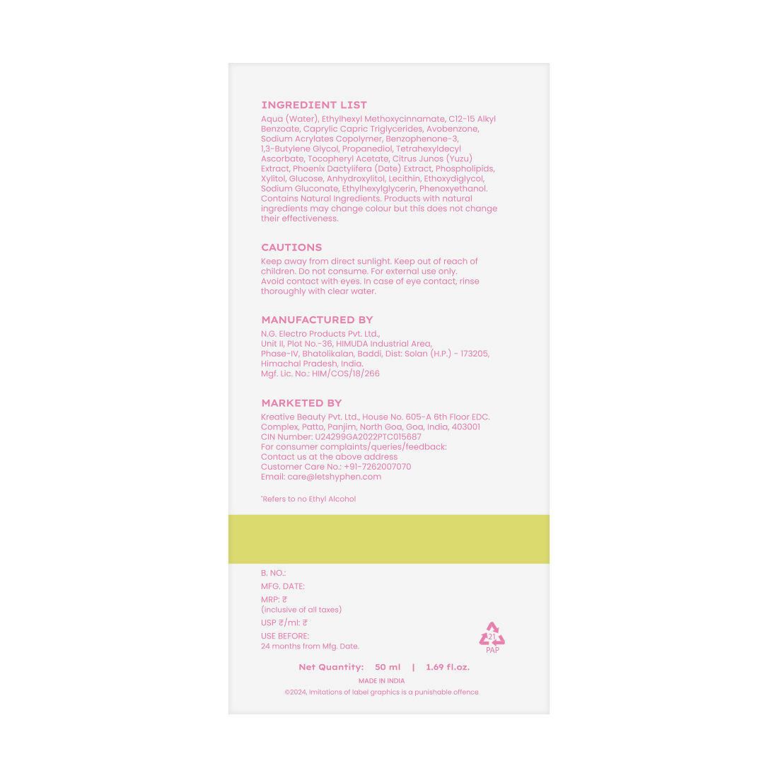 Hyphen By Kriti Sanon Vitamin Infused Brightening Sunscreen SPF 50 PA++++, Brightenens Skin, Reduces Dark spots & Pigmentation, No White Cast